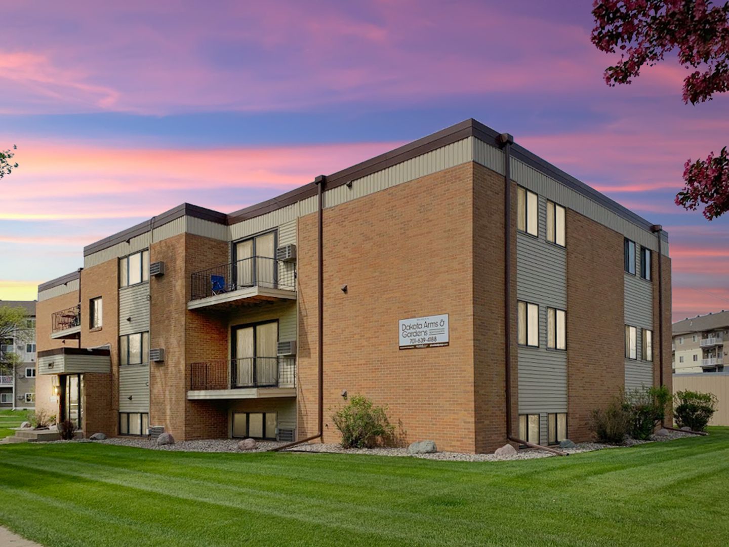 Dakota Arms & Gardens is conveniently located in North Fargo near shopping, restaurants, parks, schools and just minutes away from the Fargo Downtown District and more! Our leasing specialists are ready to help you find your next home!
